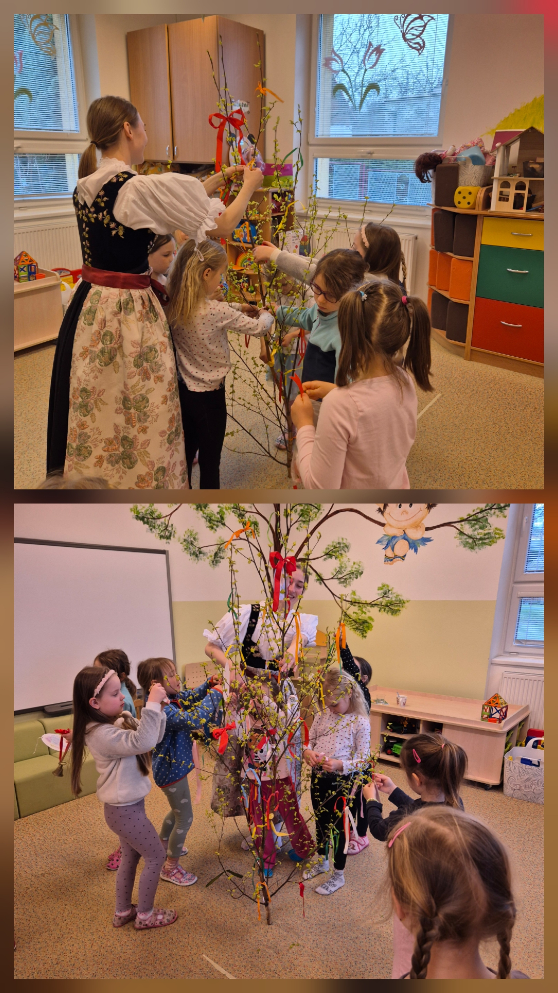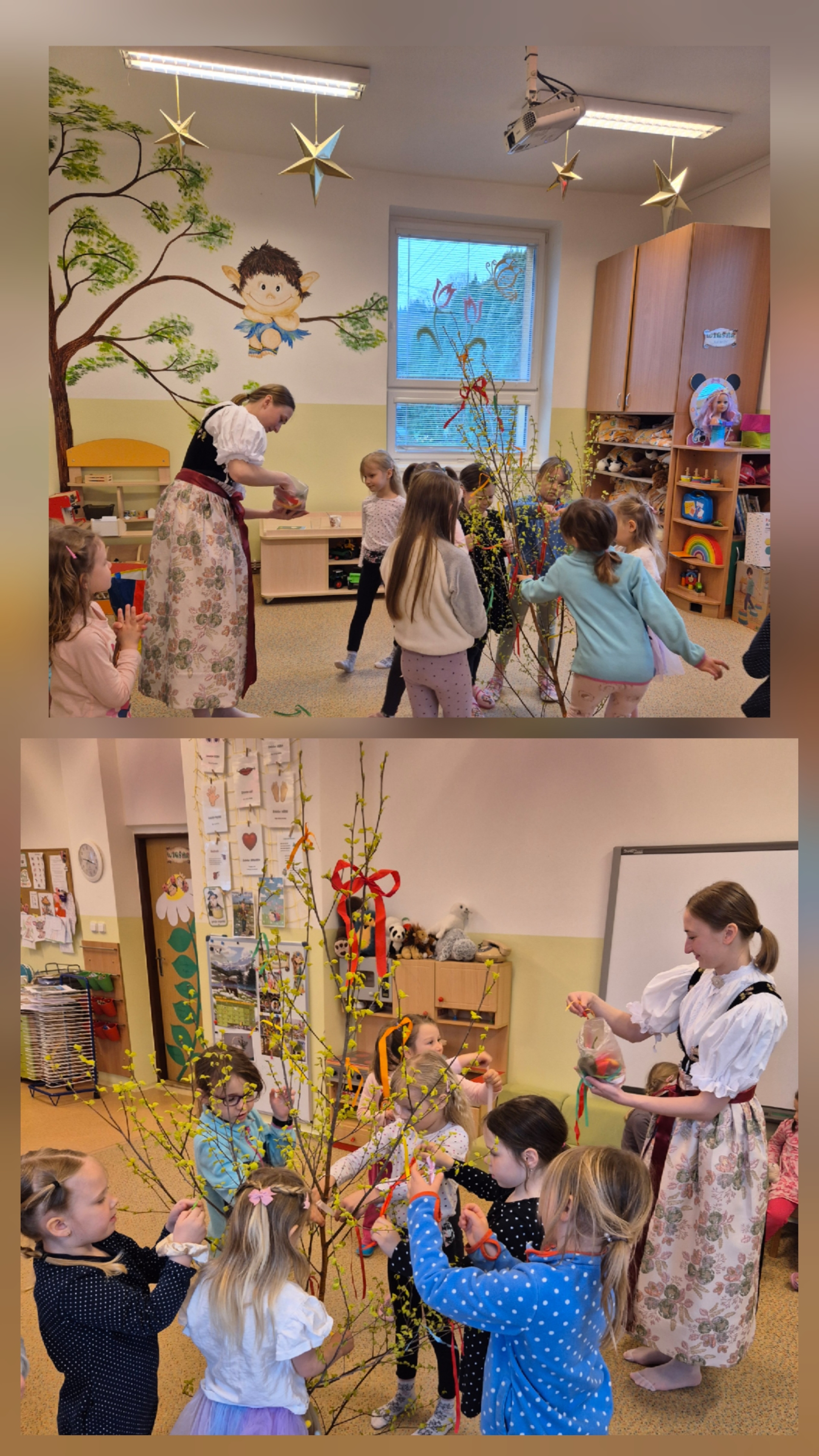 zdobią gałązkę wstążkami oraz wydmuszkami, a następnie chodzą z nią od