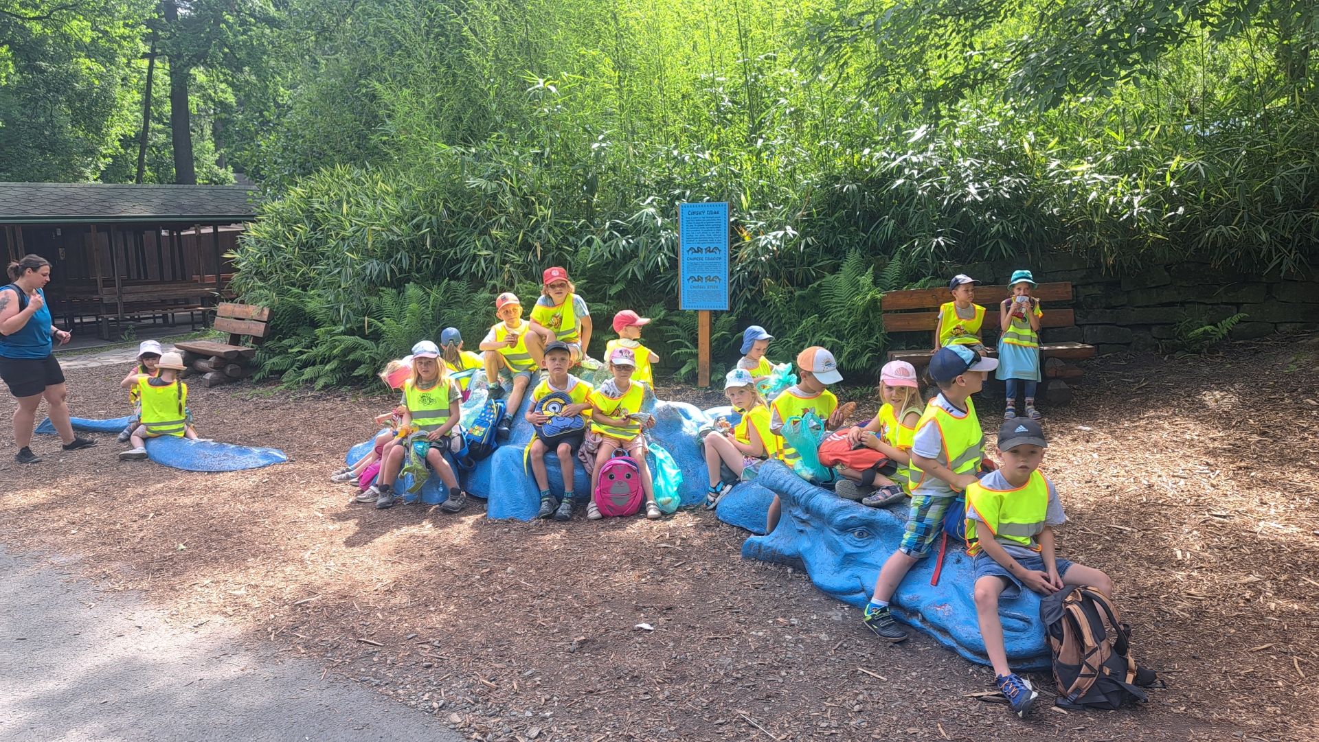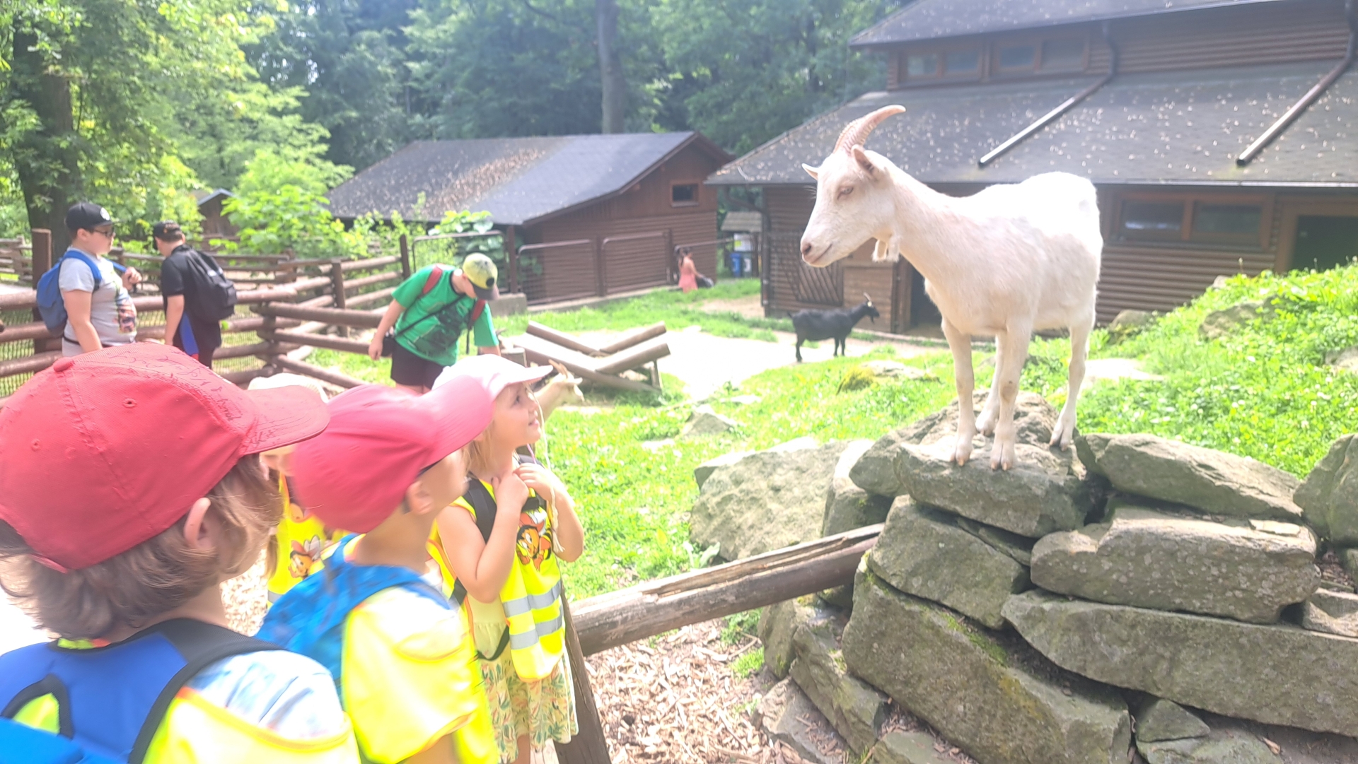 Nasze przedszkolaki – średniaki i starszaki – wybrały się na niezapomnianą wycieczkę do ZOO w Ostrawie. Już sama podróż była wielkim przeżyciem, ponieważ dzieci jechały pociągiem i trolejbusem, co sprawiło im ogromną radość.Na miejscu czekało mnóstwo atrakcji: przejażdżka zoo-ciuchcią, zabawa na placu zabaw, a przede wszystkim możliwość podziwiania wielu egzotycznych i znanych zwierząt – od majestatycznych słoni i żyraf, po wesołe małpki, kolorowe papugi czy groźnie wyglądające lwy.Dzieci wróciły pełne wrażeń, z szerokimi uśmiechami i nową wiedzą o świecie zwierząt. Była to wycieczka pełna przygód, którą długo będziemy wspominać!