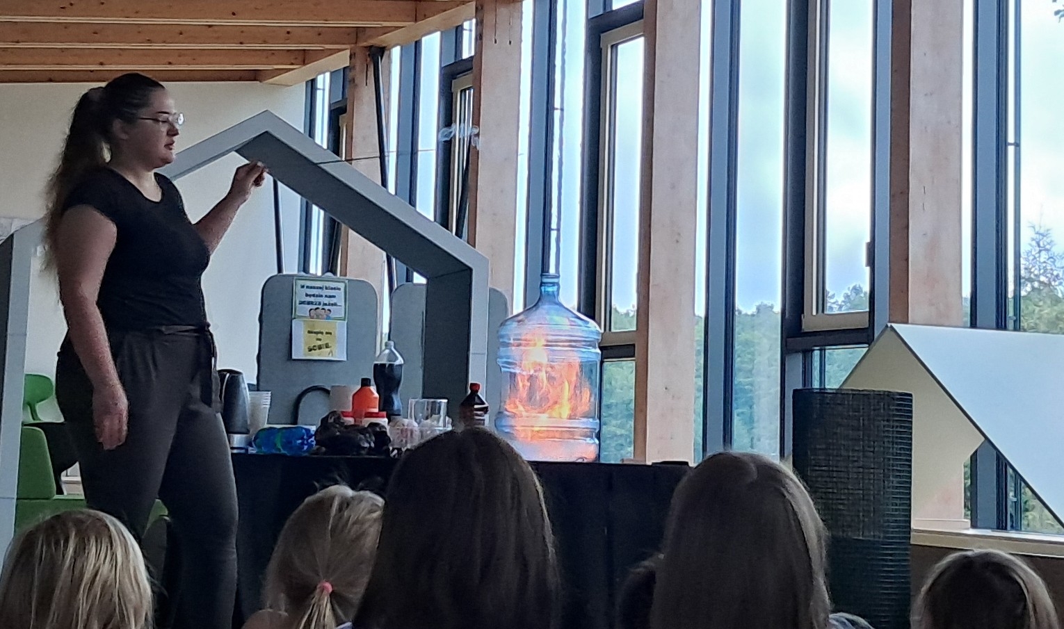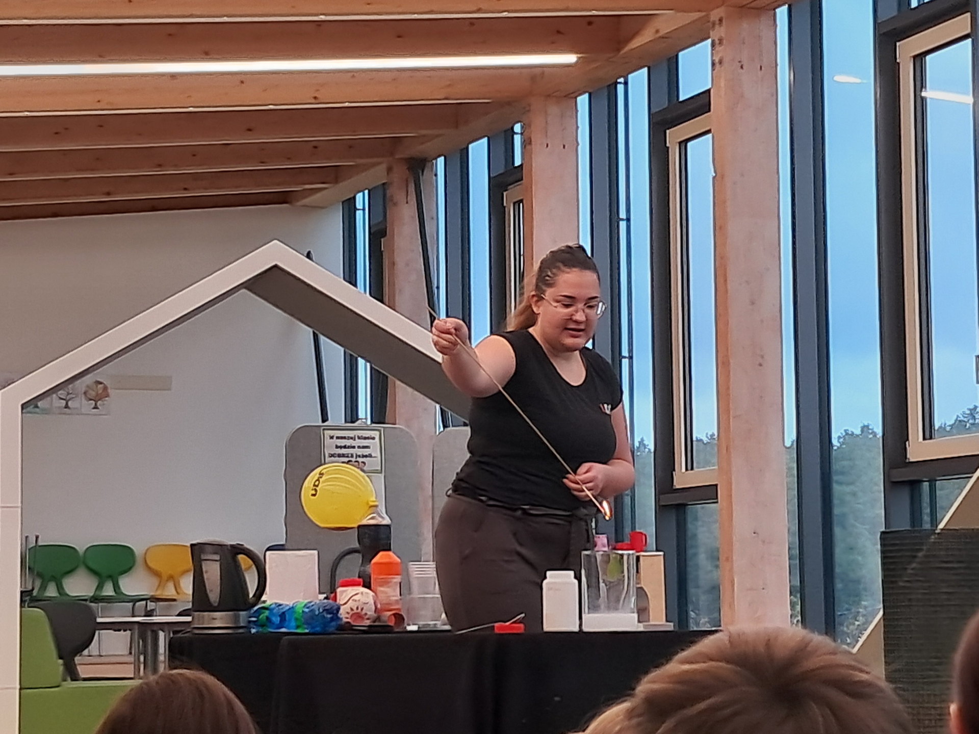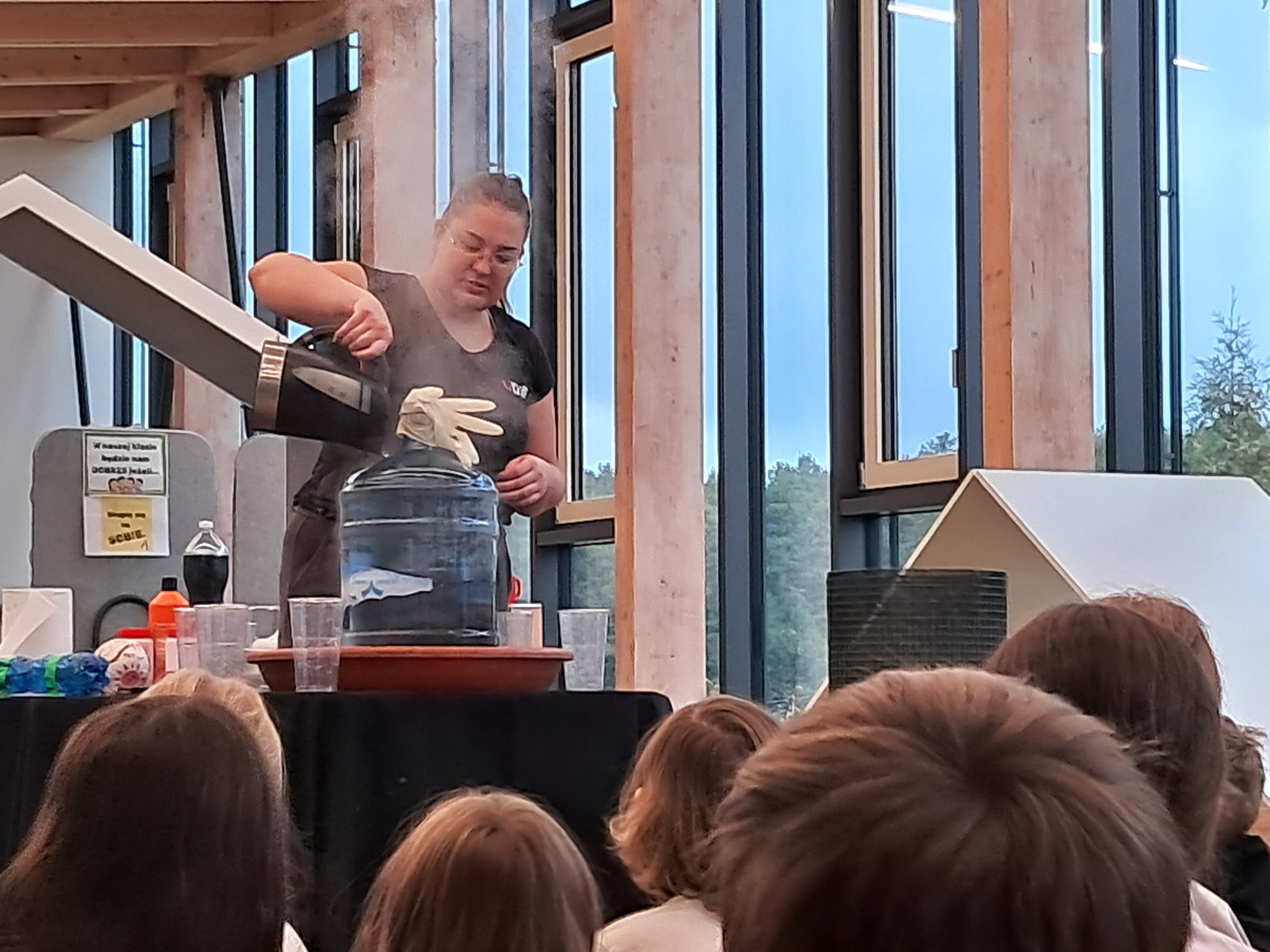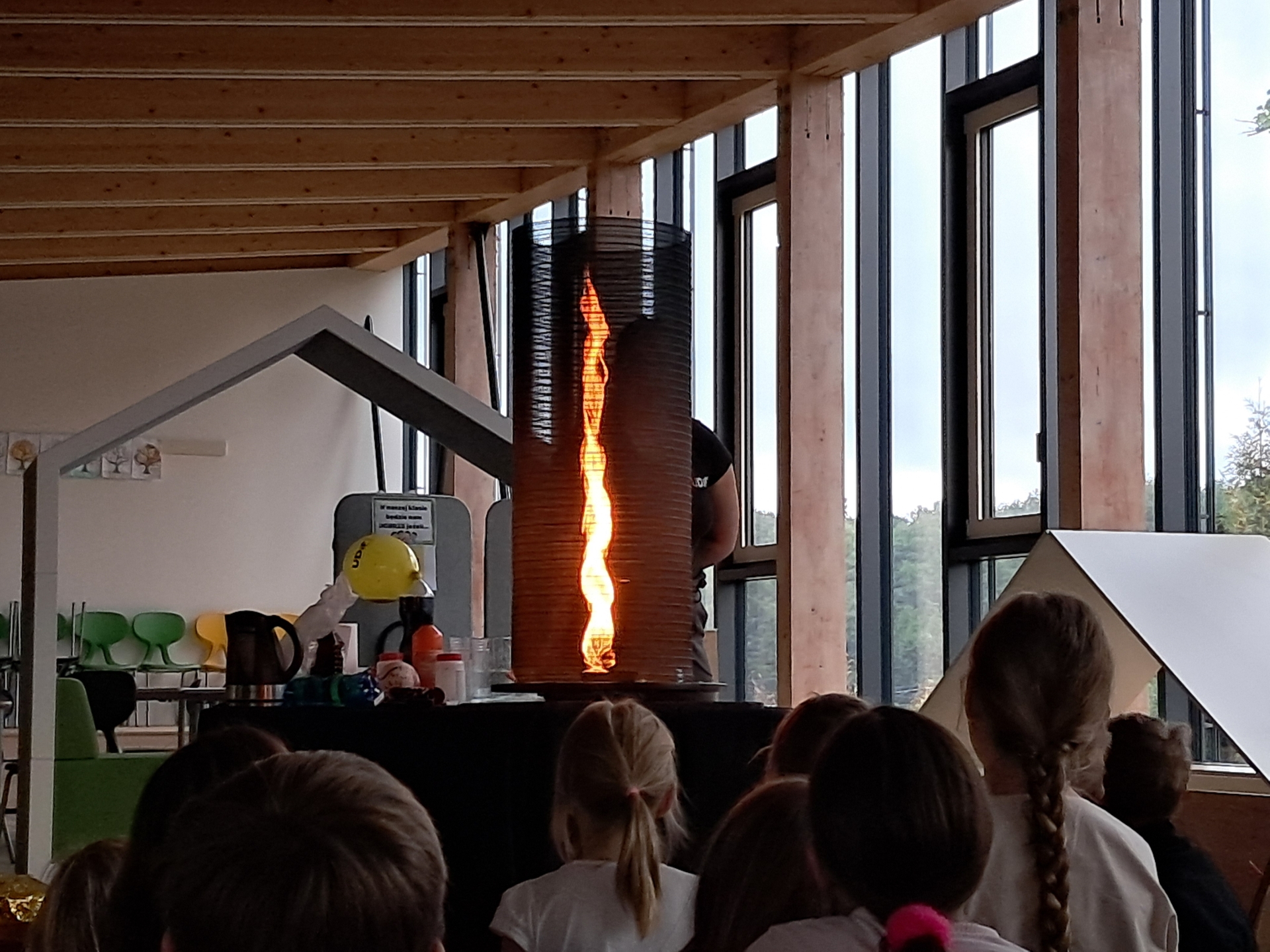 Dziś w naszej szkole odbyło się niezwykłe przedstawienie „Ogień, woda, powietrze”, zrealizowane w ramach innowacyjnego Teatru Fizyki. To spotkanie zamieniło tradycyjną lekcję w spektakularny pokaz naukowy! Uczniowie mieli szansę stać się nie tylko widzami, ale i aktywnymi uczestnikami dynamicznych eksperymentów, skupionych na wizualnym i praktycznym objaśnianiu praw fizyki związanych z żywiołami.