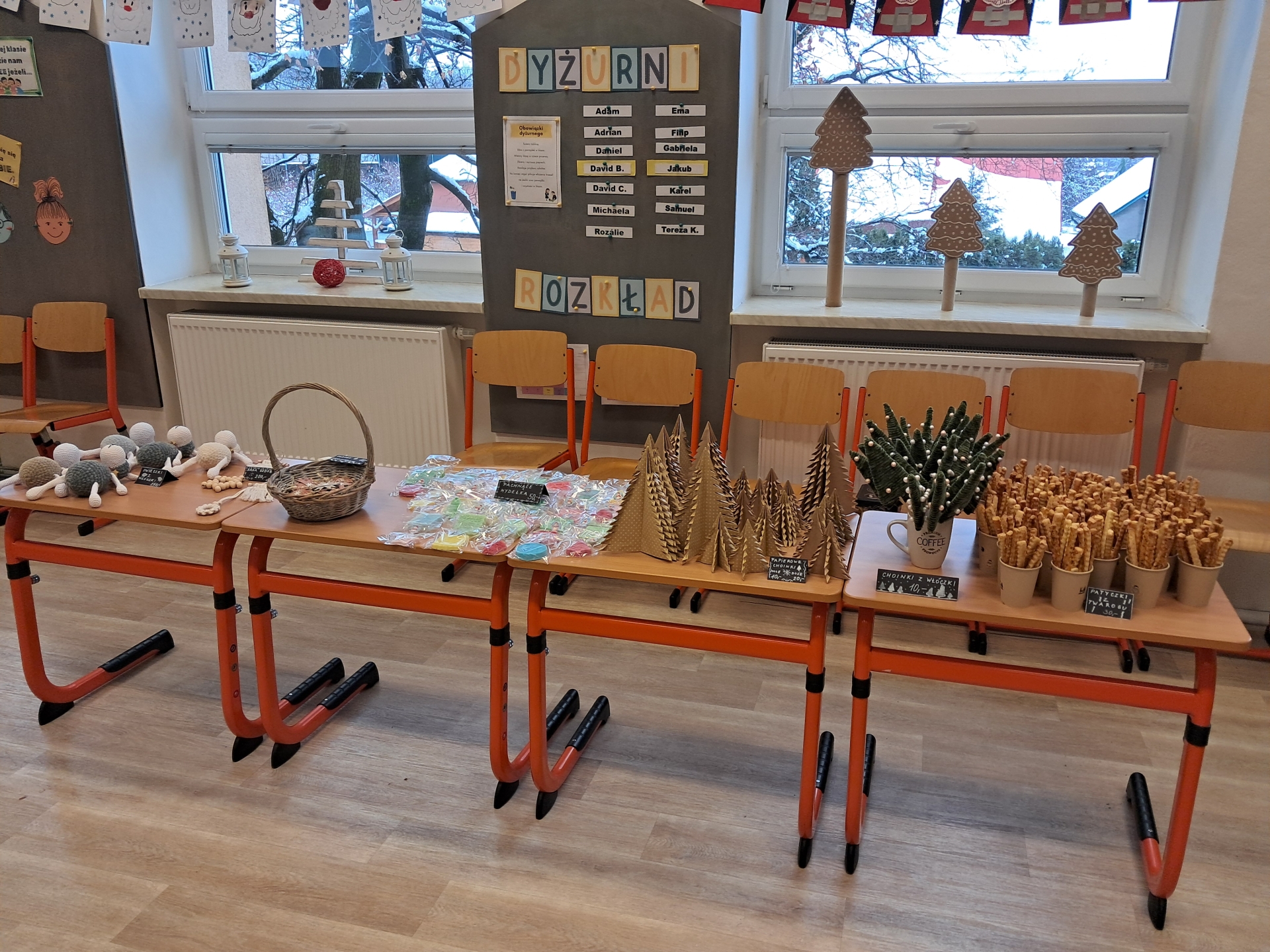 W miniony czwartek nasza szkoła rozbłysła świąteczną magią, zamieniając się w tętniący życiem Jarmark Bożonarodzeniowy. Uczniowie stali się sercem wydarzenia, prezentując nie tylko swój talent artystyczny, ale i ducha przedsiębiorczości jako główni sprzedawcy i wystawcy. Nie zabrakło również kącika gastronomicznego, gdzie serwowali różne wypieki, babeczki i ciepłe napoje.