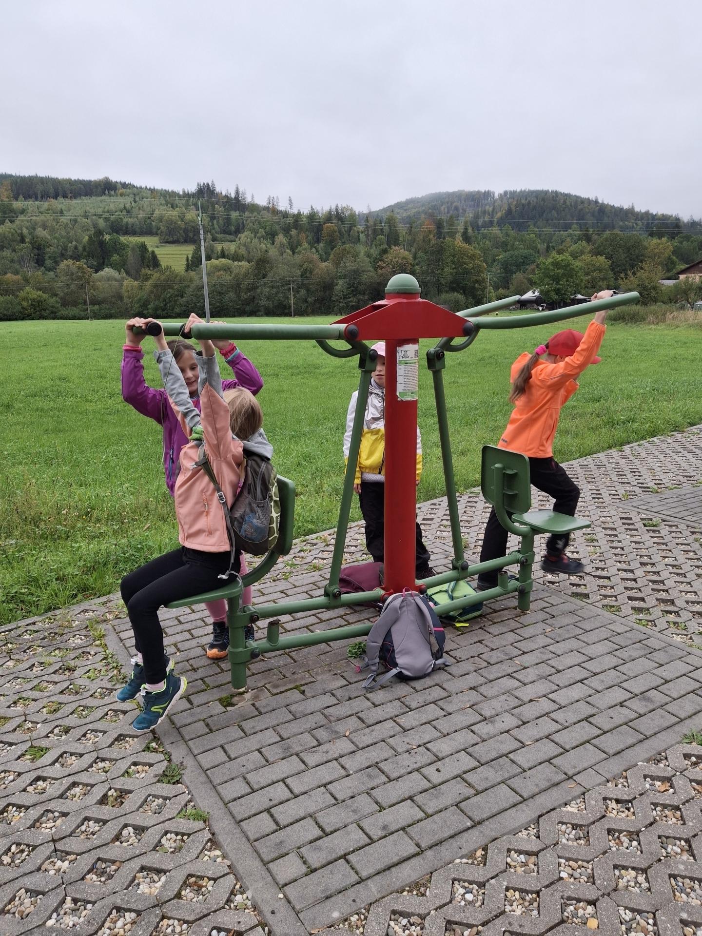 Po południu, pełni energii, wybraliśmy się na wycieczkę do Bukowca. Naszym celem był olbrzymi plac zabaw, gdzie mogliśmy do woli skakać, wspinać się i zjeżdżać. To była prawdziwa radość!